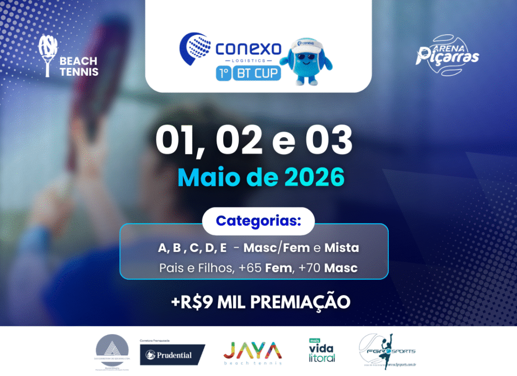 Sobre a nossa Copa A 1º BT CUP Conexo Logistics promete reunir atletas apaixonados de todos os níveis na belíssima Arena Piçarras. Teremos disputas de altíssimo nível, indo das categorias Iniciante (E) ao Avançado (A). O evento também celebra a família e a longevidade no esporte com as emocionantes categorias “Pais e Filhos” e Master (+65 e +70).